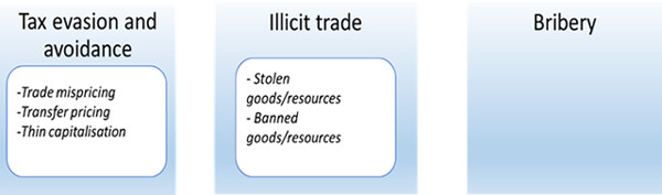 Trade misinvoicing, which is a major aspect of illicit financial flows, is a bottleneck on Africa’s growth and opportunity (see Figure 1: forms of illicit financial flows). It denies African governments billions of dollars in foreign exchange and taxes revenue each year. It also weakens political and economic institutions that are key to state building because the underinvoicing of exports and overinvoicing of imports make it harder for concerned state institutions to collect taxes and levies.